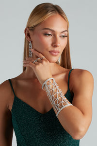 Sleek Glamour Rhinestone Bracelet Sleek Glamour Rhinestone BraceletAdorn your wrist with this glam bracelet featuring rhinestone accents along a sleek metal band. Style with a ditsy floral dress for a garden party or graduation! Fit & Features - Sleek metal band