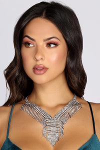 For the girl that isnt afraid of being a lil extra! For the girl that loves her bling! This necklace featutres a V design with short bars of fringe hanging from all ends. Rhinestones adorn the full necklace for lots of sparkles and lead to a lobster clasp closure at the back.Style Number/Barcode: 07002-0107