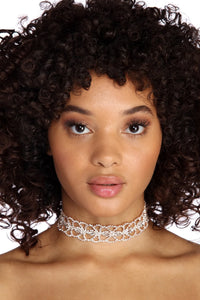 Add the right amount of sparkle in this rose gold rhinestone choker! It features a row of rhinestones paired with a second row of larger rhinestones for a drop effect. Choker has an adjustable back chain with a lobster clasp closure.