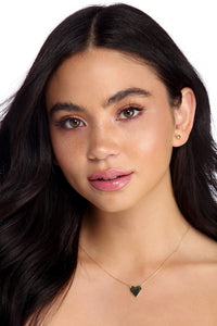 This heart necklace and studs set is the key to accessorizing the perfect 'fit! The pack features a cute dainty gold chain necklace showcasing a heart pendant with an adjustable lobster clasp closure. It also includes small round gold stud earrings with post back closures.
