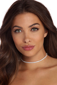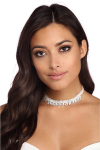 Reign the night in dazzling rhinestones! This choker features a double row of mini rhinestones and a long lariat charm to bring the drama!