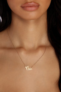 Fashionably showcase your zodiac sign with this dainty gold necklace! It features a chain with the script lettering in a pretty cursive font. Includes an adjustable lobster clasp closure.