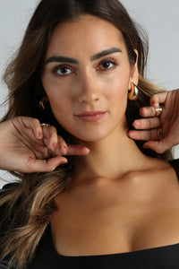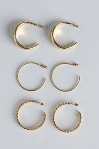 You'll love styling your casual 'fits with the trendy deets of this hoop earring set! The multi-pack features three pairs of hoop earrings including flat chunky hoops, thin textured hoops, and chain-link hoops. All include post-back closures. Add this set to your everyday jewelry lineup with a layered charm necklace and a dainty rhinestone ring!