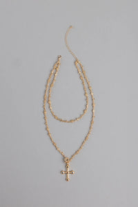 Show your devotion with this layered cross necklace in a pretty layered design with colored rhinestone trim.