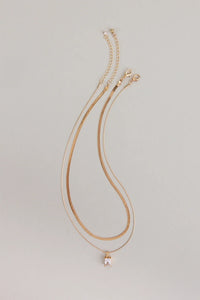 Your glow-up deserves accessories to match. This layered necklace with a sparkling rhinestone charm adds luxe energy to any look!