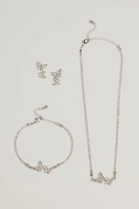 Fluttering Elegance Rhinestone Butterfly Glam Necklace Set