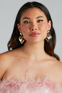 Showcase your good vibes with these heart-shaped earrings! They feature a large round post with a hanging statement heart design with a post-back closure. Complete your look with a marabou sequin dress for a party!