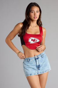 Your sideline ‘fit just scored big. This Kansas City Chiefs lace-up tank top brings the perfect mix of sporty and spicy so you can cheer hard and keep all eyes on you.