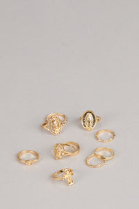 A little vintage, a little bold, all intentional. This eight-statement ring pack brings symbolic detail and textured shine together for stacking, styling, and switching up your everyday rotation.
