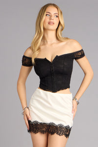 All Dressed Up Satin Lace Trim Mini Skirt