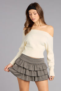 Preppy meets playful in this ruffled plaid mini skort that’s serving major throwback charm. With built-in shorts and tiered layers, it’s perfect for latte runs, casual hangs, and stylish outfit posts.