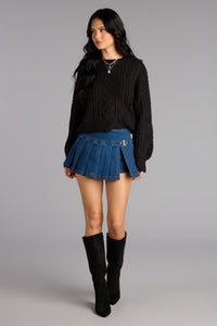 She’s giving ‘effortless but planned.’ This pleated denim mini skort brings that flirty Y2K energy with just the right amount of edge—perfect for styling with your favorite sweater or baby tee.