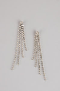 These earrings feature cascading rhinestone strands that catch the light beautifully, making them perfect for pairing with formal looks!