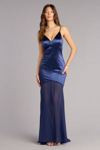 Kayla Satin Open Back Chiffon Formal Dress