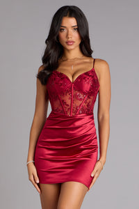 Wine And Roses Lace Mini Dress