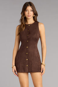 Rustic Charm Faux Suede A-Line Mini Dress