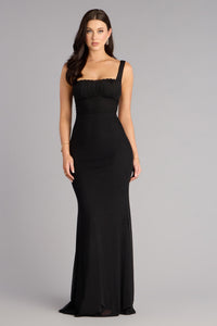 Softly romantic with a refined edge, the Arden mesh mermaid gown is made for evenings when you want every detail to feel intentional. A lace trim square neck and padded bust create an elegant frame, while the lace-up back and sweeping mermaid silhouette add movement and allure.
