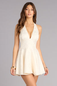 Glow Getter Plunge Halter Mini Dress