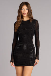 Sleek Impact Rhinestone Sheer Mesh Mini Dress