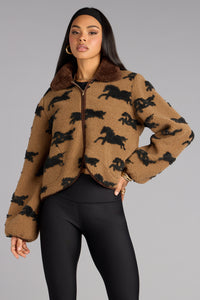 Wild Spirit Horse Print Faux Sherpa Jacket