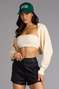 Layer it, love it, live in it—this oversized cable knit bolero has endless styling possibilities! From layering over your casual fit to keeping warm over a formal dress.