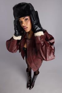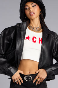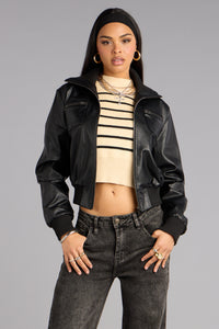 Downtown Girl Faux Leather Sherpa Crop Jacket