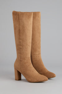 Classic, chic, and made to strut. These knee-high boots feature a sleek faux suede finish with a block heel that gives height without sacrificing comfort—perfect for everything from city strolls to dinners out.