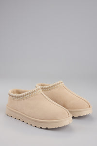 For when comfort is the assignment and the aesthetic. These faux suede platform slippers serve soft luxury with a cozy faux fur lining and embroidered trim—basically, perfect for coffee runs, airport fits, or cozy nights in.