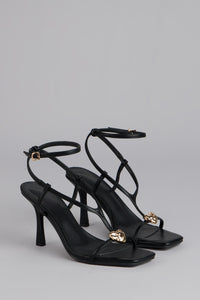 Simple, sleek, and made to shine. These strappy stiletto heels feature delicate ankle straps and gold heart accents that add just the right amount of polish to your day out plans or wedding guest lineup.