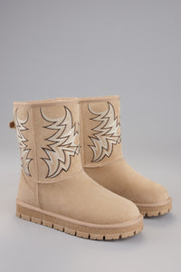 Cowgirl meets cozy season. These embroidered suede boots bring a western twist to your off-duty looks—perfect for pairing with denim, knits, or oversized flannels when the temps drop.