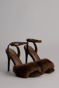 A little fluff goes a long way. These faux suede stiletto heels feature a plush faux fur strap that’s all about cozy-glam energy—perfect for dressing up your outfits with a soft, sultry twist.