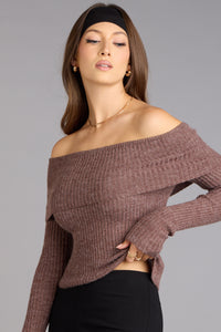 The sweater that nails cozy and confident. This off-the-shoulder sweater features a foldover neckline and a fitted, flattering shape that feels effortlessly chic. Perfect for pairing with capris, denim, or the classic skirt and tights combo.