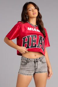 Bring the fire—literally. This crop top serves Miami Heat attitude with a sporty mesh design and bold team lettering that turns any outfit into a statement. Pair it with denim or leather and call it your off-duty uniform.