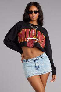 For the girl who rocks her team gear like a trend piece. This NBA Miami Heat sweatshirt serves vintage sport energy with a street-style twist—perfect for game day or off-duty weekend looks that turn heads.