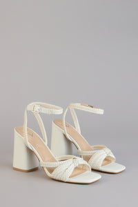 - Multiple rhinestone criss-cross strap design