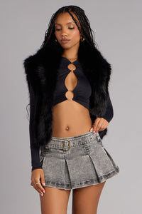 Short, sharp, and styled to stand out. This belted denim mini skort brings flirty pleats and built-in confidence for nights out, daytime plans, and everything in between.