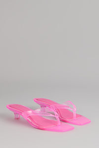 Minimal, glossy, and ready to go wherever the plans land. These jelly thong kitten heels add just enough lift with an easy slip-on style, perfect for day plans or sunset cocktails by the beach!
