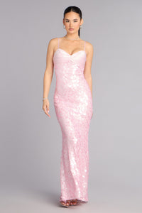 Softly romantic with just the right touch of sparkle, the Hallie dress feels like it was made for golden hour entrances and champagne toasts. Designed in floral sequins with a sculpted mermaid silhouette, it features a plunging neckline, sheer cutout detail, and rhinestone boning that catches the light with every step.