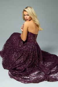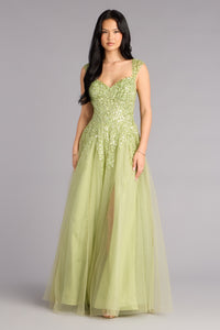 Straight out of a modern fairytale, the Ashley ball gown is designed for moments that feel once in a lifetime. Layers of tulle, intricate applique, and sequins, along with a sweeping, A-line floor-length silhouette, come together in a lace-up back to create a gown that feels whimsical, romantic, and unforgettable.
