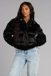 All the warmth, none of the bulk—this oversized faux leather puffer gives your winter look that effortless “don’t worry, I’ve got it handled” vibe. The glossy finish and hood bring street-style edge, while the cozy fill keeps you warm from coffee runs to late-night plans.