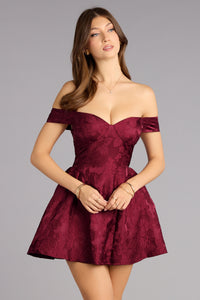 Romantic, refined, and made to twirl—the Winslow skater dress brings timeless charm to the modern moment. Crafted from jacquard woven fabric with an off-the-shoulder neckline and flared skater silhouette, it’s the definition of effortless elegance in motion.
