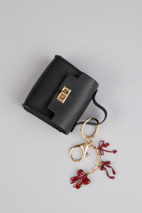 Small but seriously chic. This faux leather mini keychain bag brings instant polish with a gold clasp and playful bow charm—perfect for clipping to your tote, keys, or crossbody for that little pop of personality.