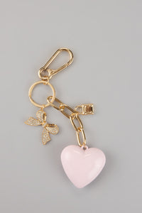 Soft, sparkly, and perfectly extra. This chic keychain features a glossy heart charm and a rhinestone-studded bow for that polished, girly touch—clip it on your keys, purse, or tote for instant charm.