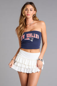 Bring the heat to the bleachers in this strapless New England Patriots tube top. With a body-hugging fit and bold team graphic, it’s perfect for pairing with denim, cargos, or a mini for the win.