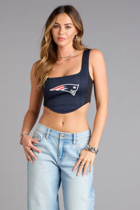 Rep your team with a side of sass. This New England Patriots corset top brings a structured fit, bold logo, and lace-up back detail that’s made to stand out from pregame to postgame.