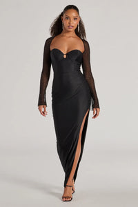 • Wren Beaded Long Sleeve High Slit Column Dress