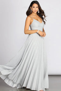 - A-Line, Floor Length Pleated Skirt