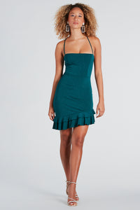 There She Glows Glitter Ruffle Hem Dress