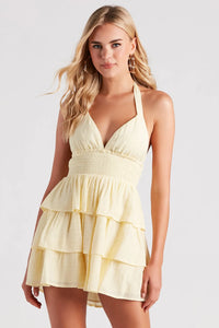 Who can imagine a look sweeter than this fit-and-flare dress? Showcase your darling side in this short eyelet dress at casual brunches or parties! This charming dress features a square neckline, tie shoulder straps, and a flattering fit-and-flare silhouette. With a tiered ruffled short-length hem and delicate eyelet lace fabric, this dress will have you looking and feeling your best. Complete the look in trendy sneakers for a cute style!