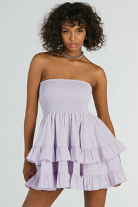 Let your shoulders out in this strapless skater dress suited best for sunny days! This dress features a stretchy smocked bodice for a comfortable fit and a skater silhouette that will flatter your figure. The layered ruffled short-length hem adds a playful touch, and the cotton woven fabric ensures all-day comfort. Complete the look with a choker necklace.